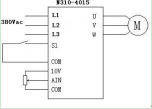 每套設備使用0.75KW變頻器和11KW變頻器;N310-2001-H1X負責拖動牽引電機帶動牽引輥對吹塑好的薄膜進行牽引;N310-4015-H3X負責拖動擠出機;牽引電機規(guī)格為0.75KW,50HZ,3.1A,1400RPM,帶有減速機;擠出電機規(guī)格為:380V,11KW,22.6A,1400RPM,50HZ,帶冷卻風機,規(guī)格為95W,380V,50HZ,1400RPM;