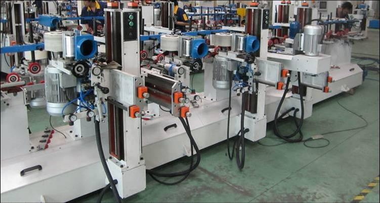 ⑵ 各段送料同步進(jìn)行,機(jī)械無級變速,輸送力矩大,適用多種材料自身及底漆砂光;